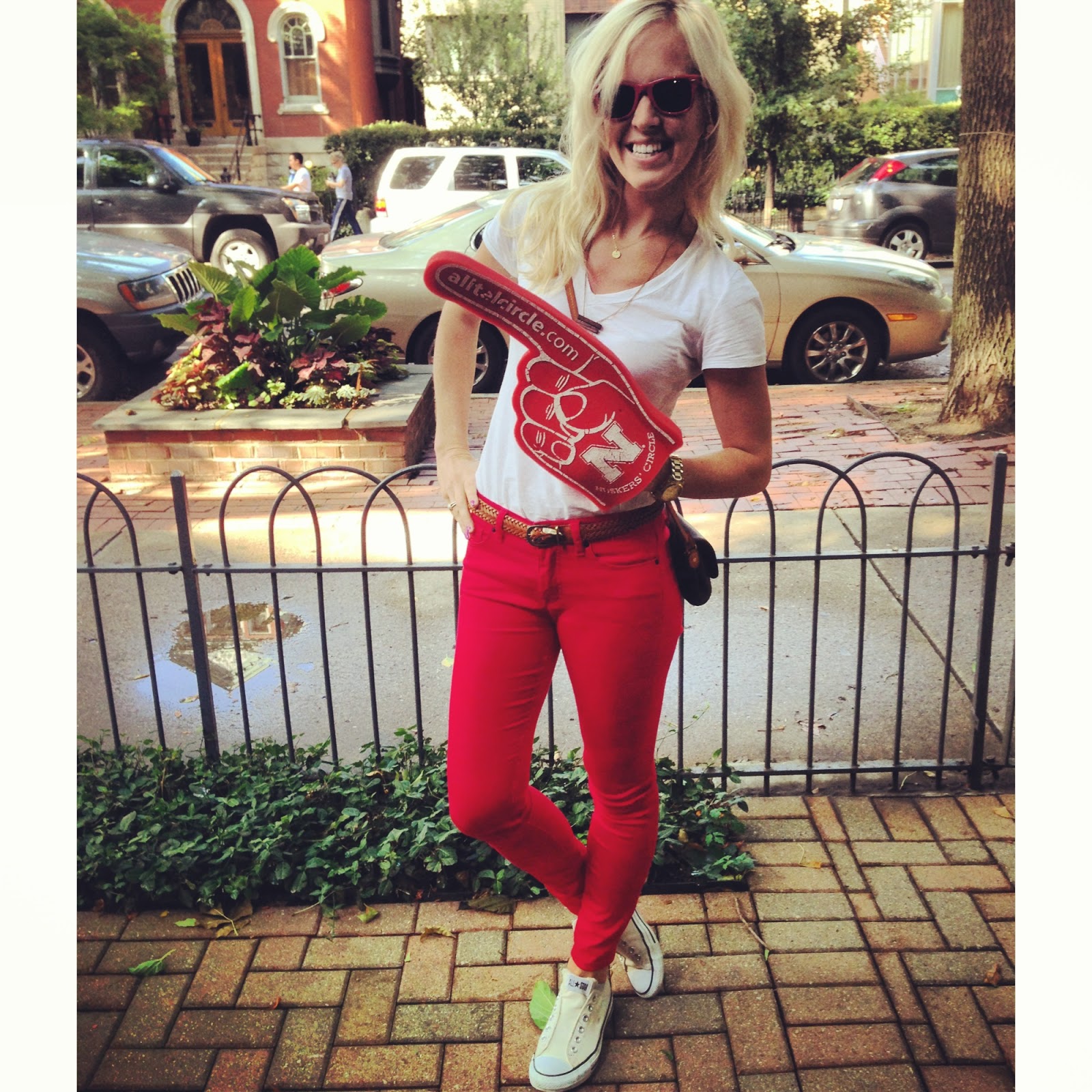 I definitely vote for you! Free Mondays is what I'm all about! I absolutely love the picture of you in your Husker Red!! You look so ready to cheer them on.