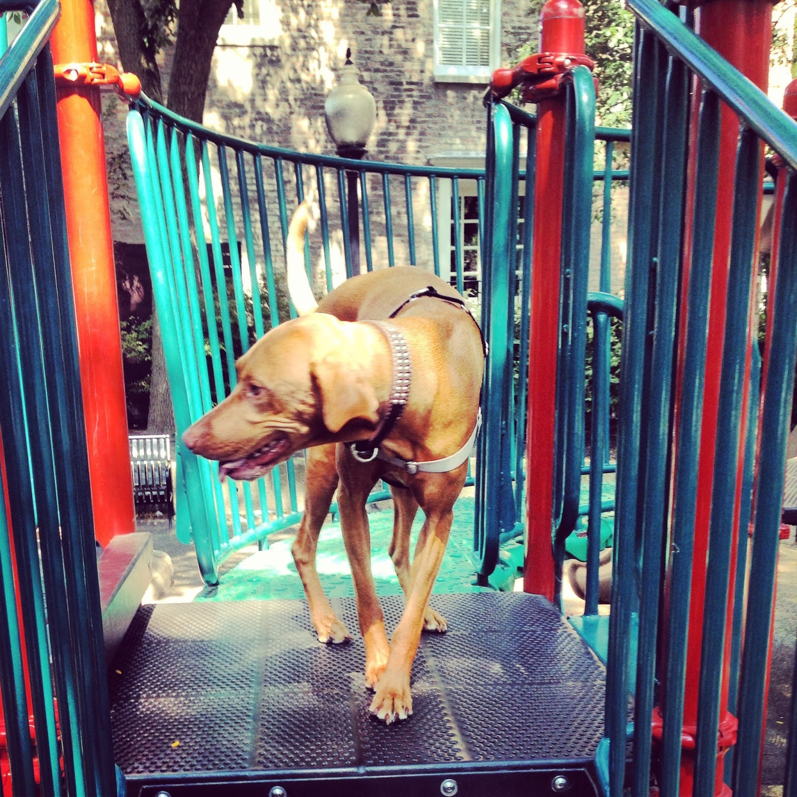 Since Harlow was back to 100% (thank God!) we were able to spend Friday afternoon at his favorite park. Does anyone else’s dog love jungle gyms? Let me rephrase that, is anyone else weird enough to get jollies off of watching their dog play on jungle gyms?
